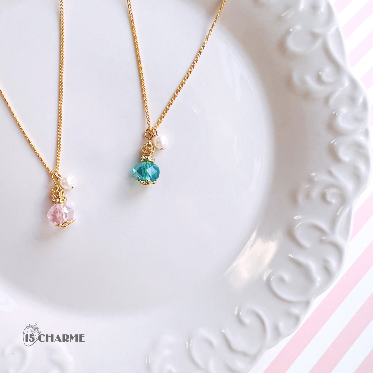 長さ:チェーン40cm/50cm チャーム約1.5cm(ガラスビーズ8mm)