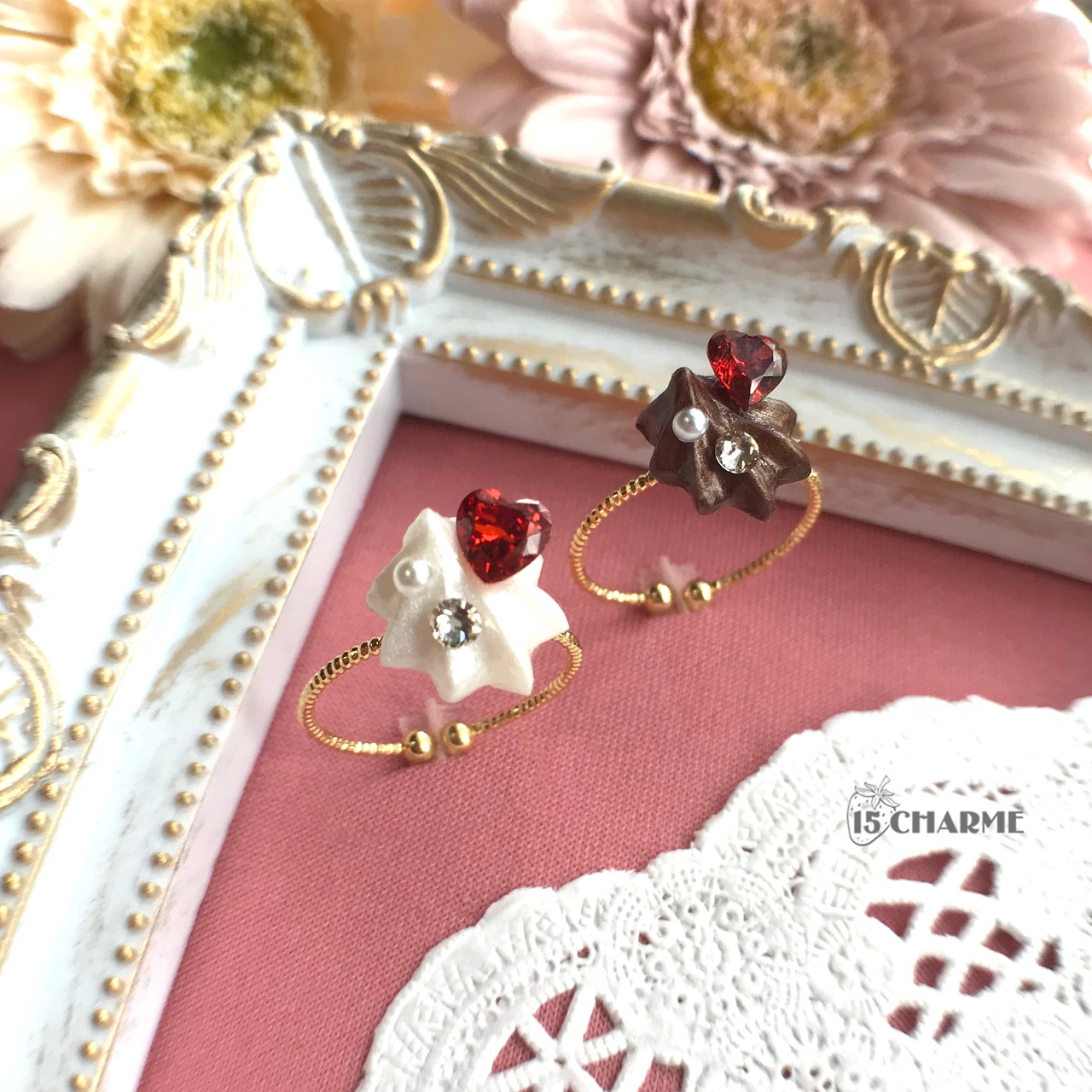 イチゴに見立てたハートのジルコニアは、